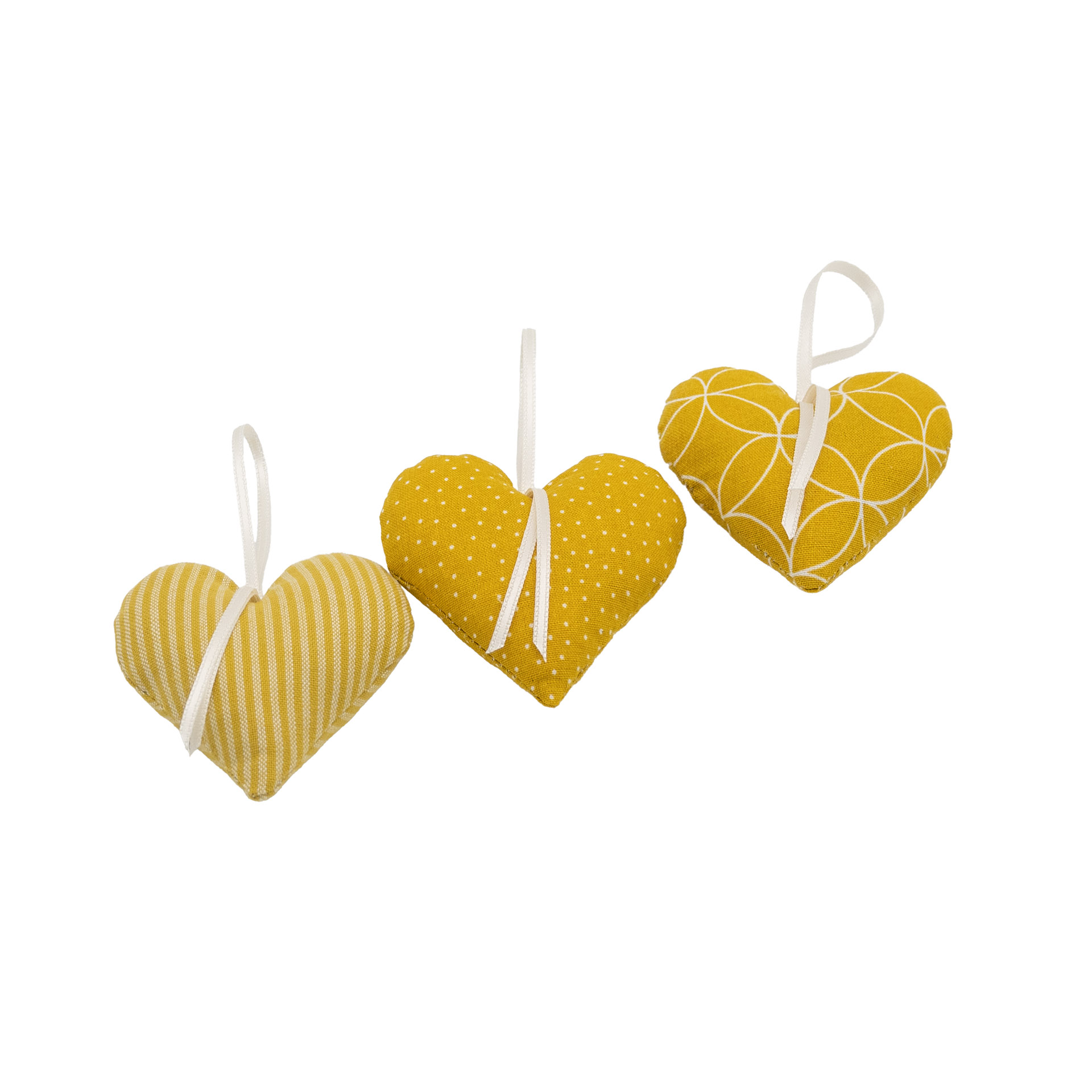 3er-Set Lavendelherzen, senf
