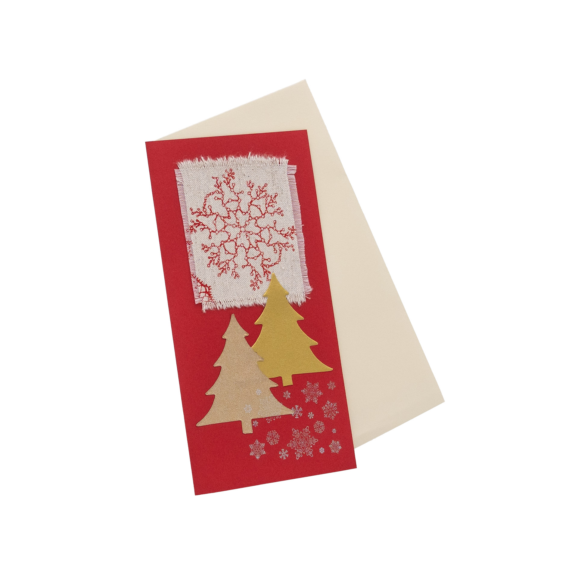 3er-Set Weihnachtskarten Tannen auf Rot