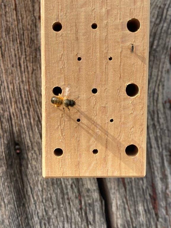 Nicht nur ein optisches Highlight, sondern ein wichtiger Beitrag, unseren Wildbienen ausreichend Brutmöglichkeiten zu bieten: unser Bienenhotel. In Handarbeit gefertigt aus heimischem Holz der Stieleiche, legen wir besonderen Wert auf eine saubere Verarbeitung der Nisthöhlen, damit sich die Tiere am Einflugloch nicht verletzen können. Dabei ist das pulverbeschichtete Stahldach so konstruiert, dass die Bienen vor Regennässe geschützt sind, aber eine stetige Umlüftung des Nistblocks immer gegeben ist.