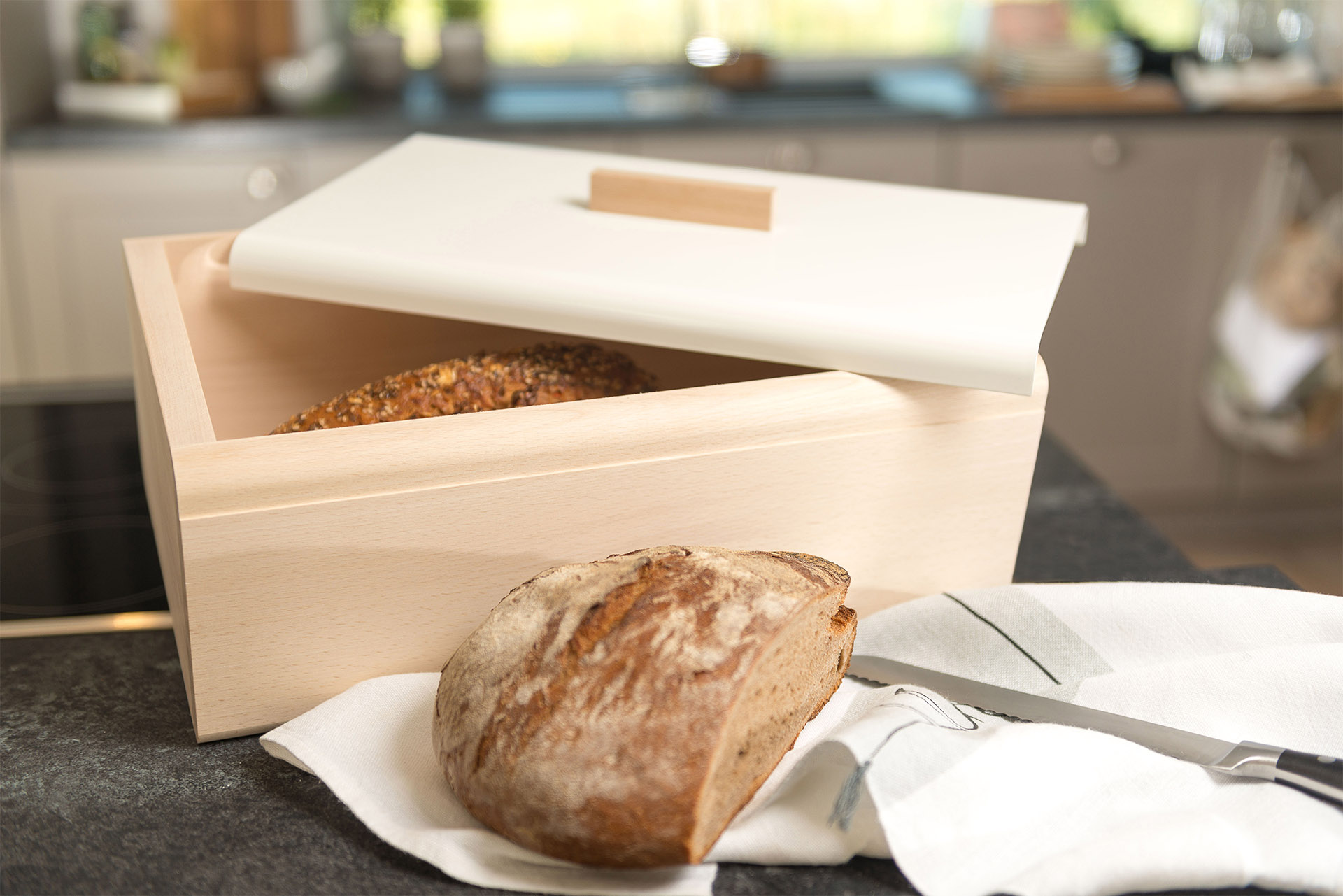 Frisches Design für frisches Brot: Das bietet die große Brotbox unserer Serie Oslo. Passend für ein kleineres Brote sowie Brötchen. Hinter dem puristischen Design des Deckels verbirgt sich eine besondere Funktion: durch Verschieben können Sie die Lüftung regulieren und so immer für optimales Brotklima sorgen.
