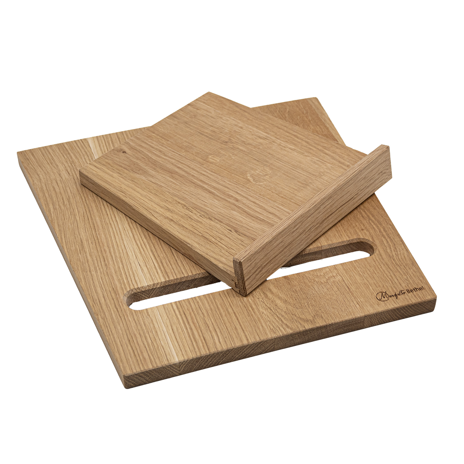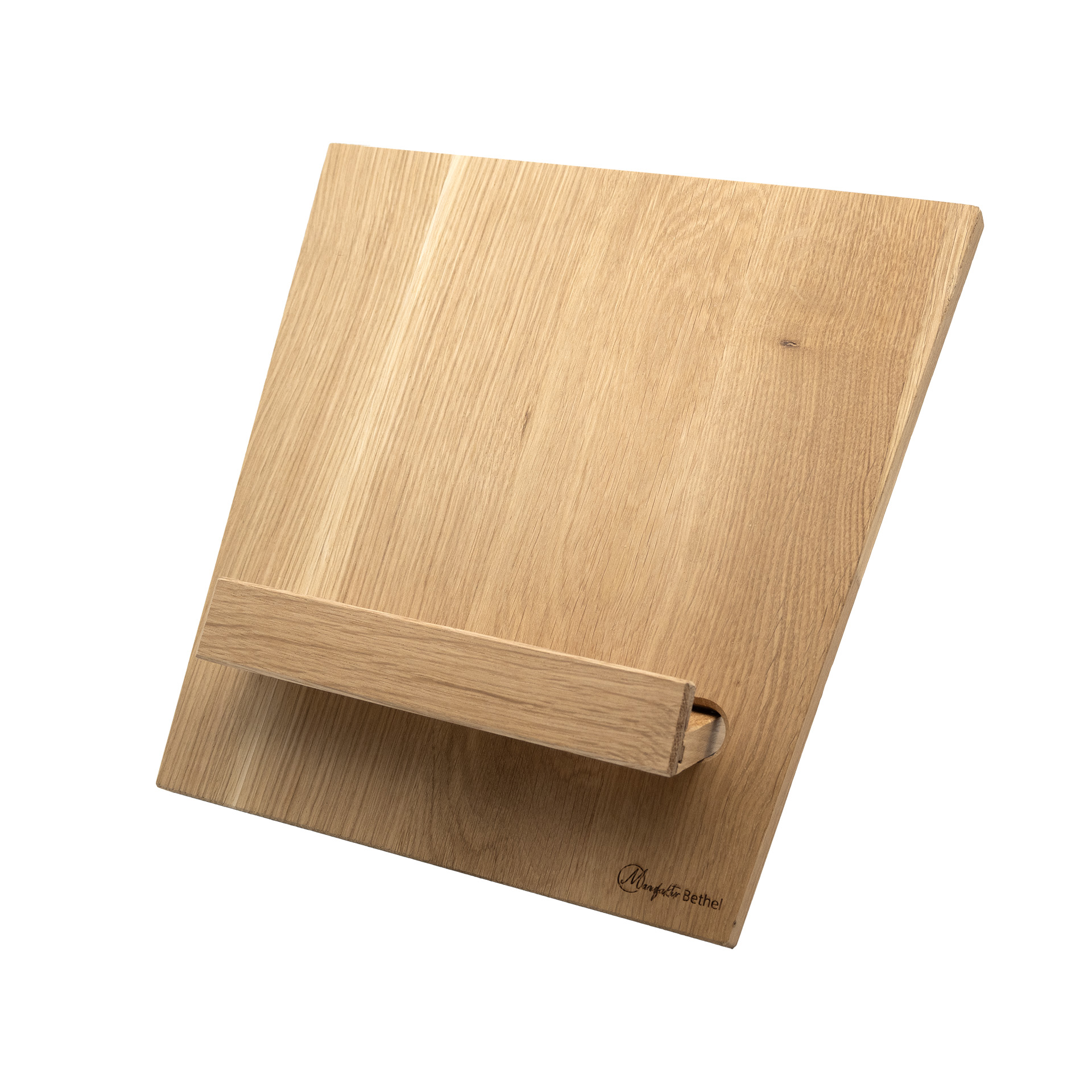 Moderne und schlichte Buchstütze aus Holz. Ob für Kochbücher in der Küche oder Bücher im Büro.