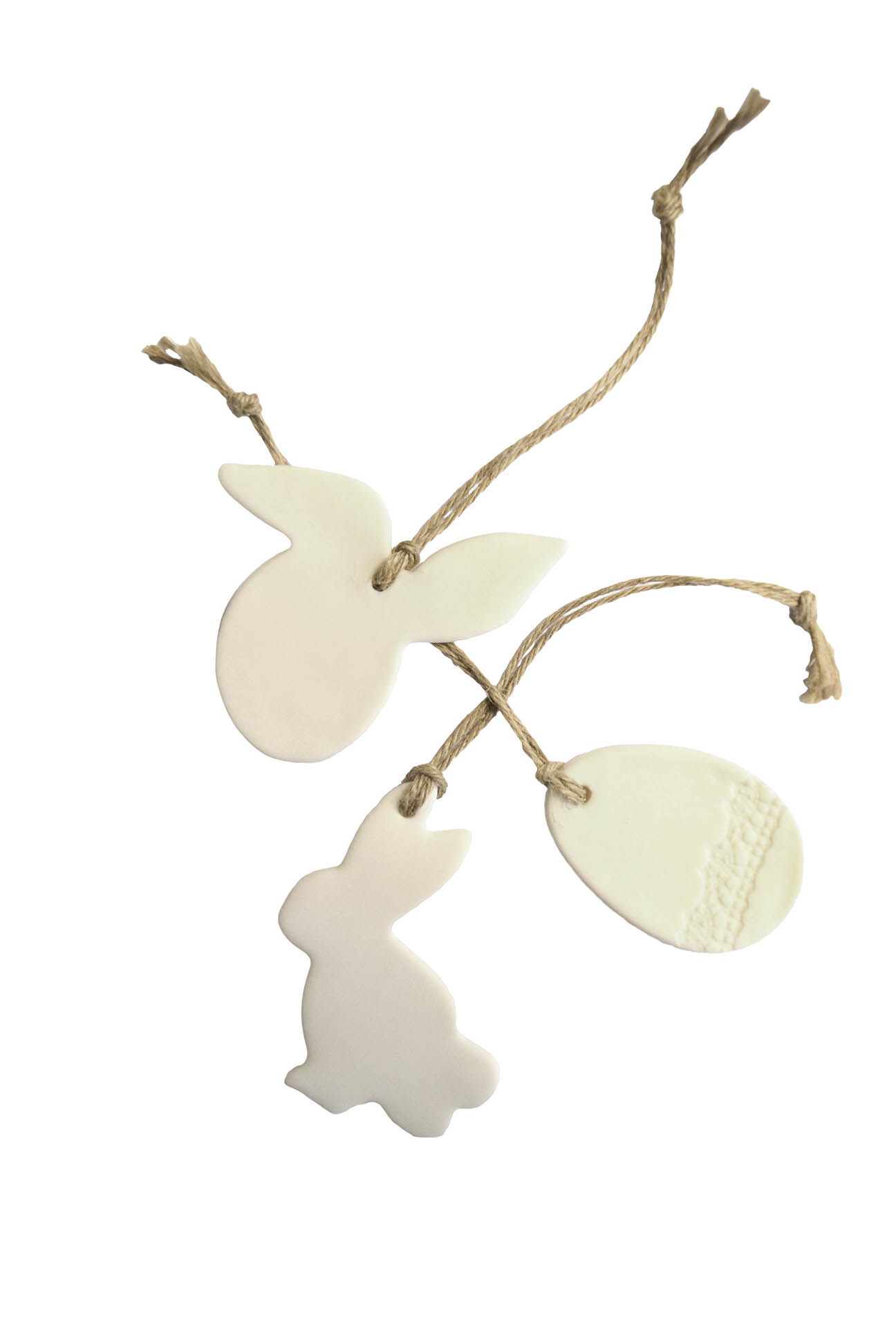 Die Osterdeko im modernen Look aus Porzellan! Das Set besticht im neutralen matt weiß mit dem Bindeband in Sisal. Im 6er-Set enthalten sind jeweils zwei Ostereier mit Prägung, zwei Hasen und zwei Hasensilhouetten. Hochwertig verpackt in einem kleinen Taschenetui aus Baumwolle.