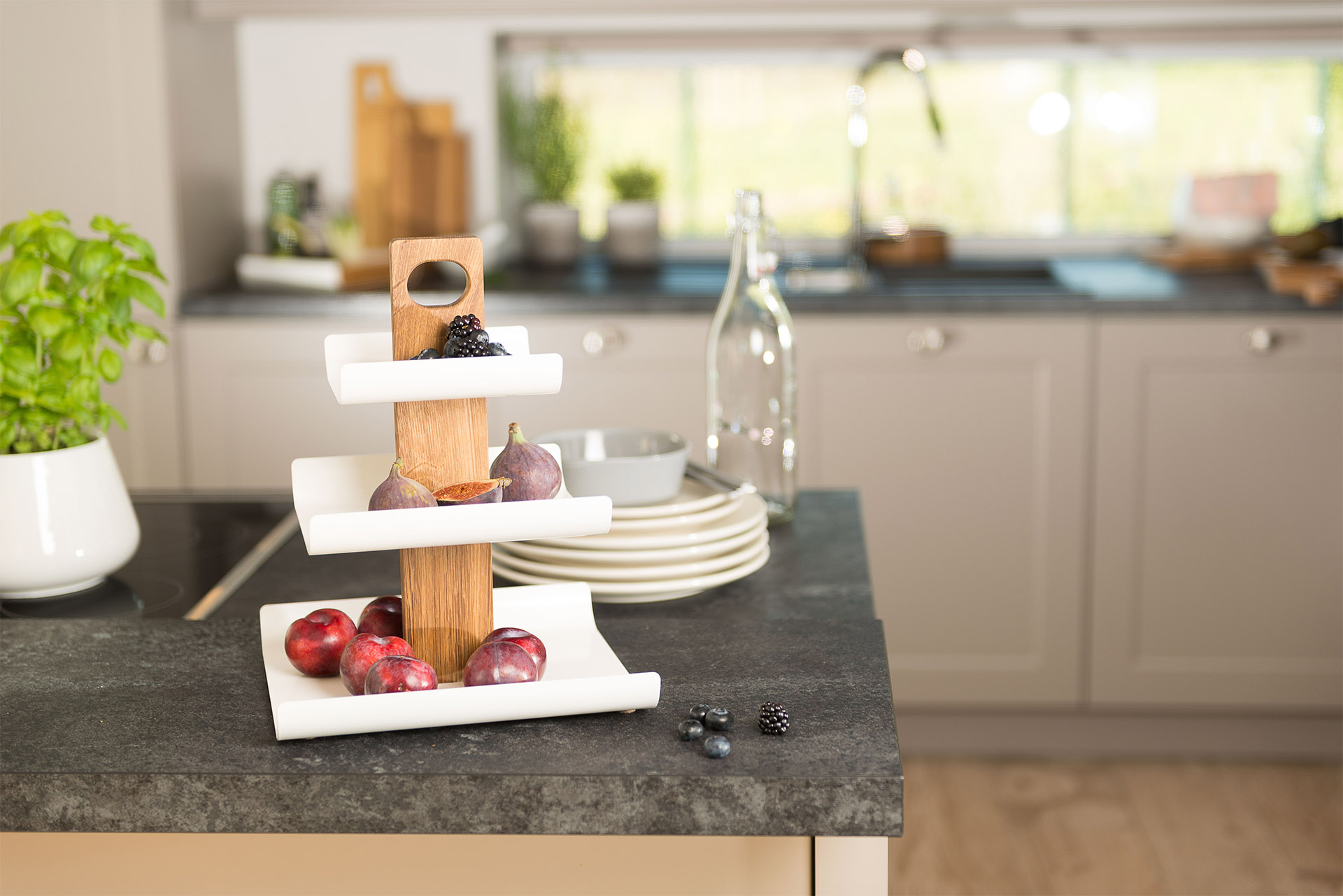 Die hohe Kunst der Tischkultur: unsere Etagere der Serie Oslo. Präsentieren Sie Ihre "leckeren Versuchungen" besonders ansprechend auf drei Etagen. Das zurückhaltend gestaltete Griffloch ermöglicht einen einfachen Transport, die hochwertigen Filzgleiter schützen Ihre Möbel zuverlässig.