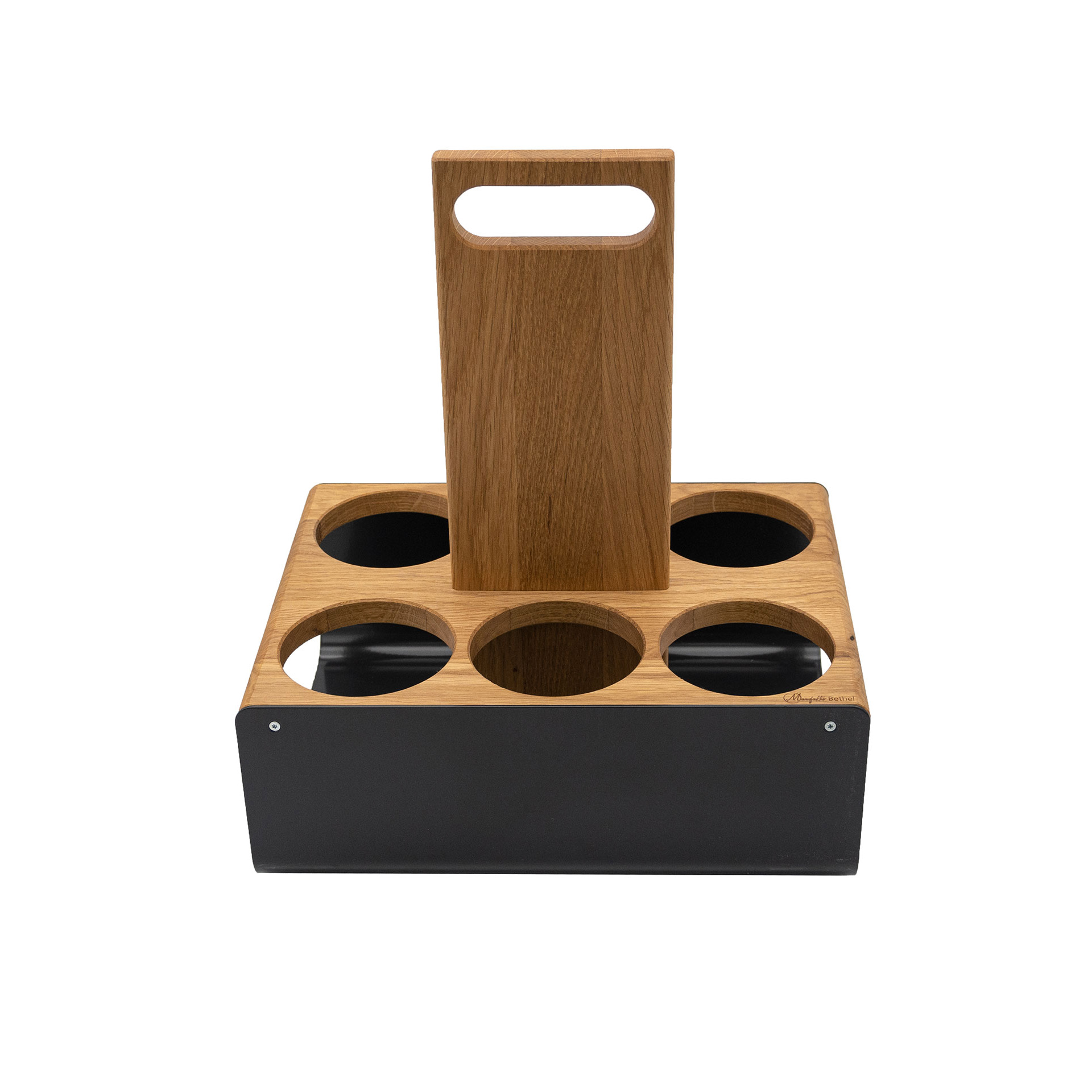 Die tragfähige Lösung für Ihre Getränke: mit der Flaschentrage unserer Serie Oslo tragen Sie volle und leere Flaschen sicher und stilvoll von A nach B. Mit nur 1450 Gramm ein Leichtgewicht – trotz robuster Verarbeitung mit 1-mm-starkem Stahlblech und massivem Holz.