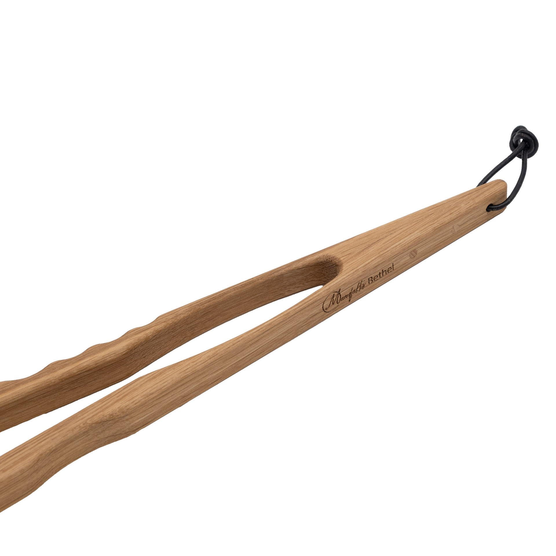 Durch das schlanke Design ist sie leicht zu handhaben und mit ihrer Länge von 59 cm ein praktischer Helfer im heißen Einsatz an Grill und Pfanne. Die Ausfräsungen für die Finger und die griffige Spitze ermöglichen ein sehr präzises Arbeiten. Die Rillen an den Zangenunterseiten sind wunderbar für das gleichzeitige Wenden mehrerer Grillwürstchen geeignet.