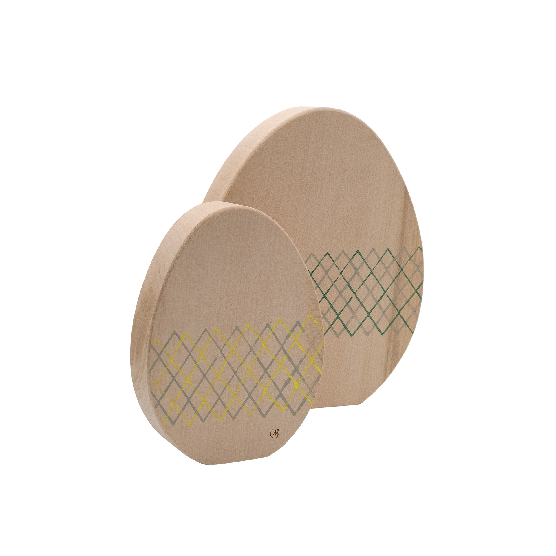 Unsere dekorativen Holzaufsteller in Ei-Form und mit schmucker Rautenverzierung in den Farben grau und gelb. Die kleine und große Variante harmonieren miteinander und verzaubern Ihre Wohnung in einen Ostertraum.