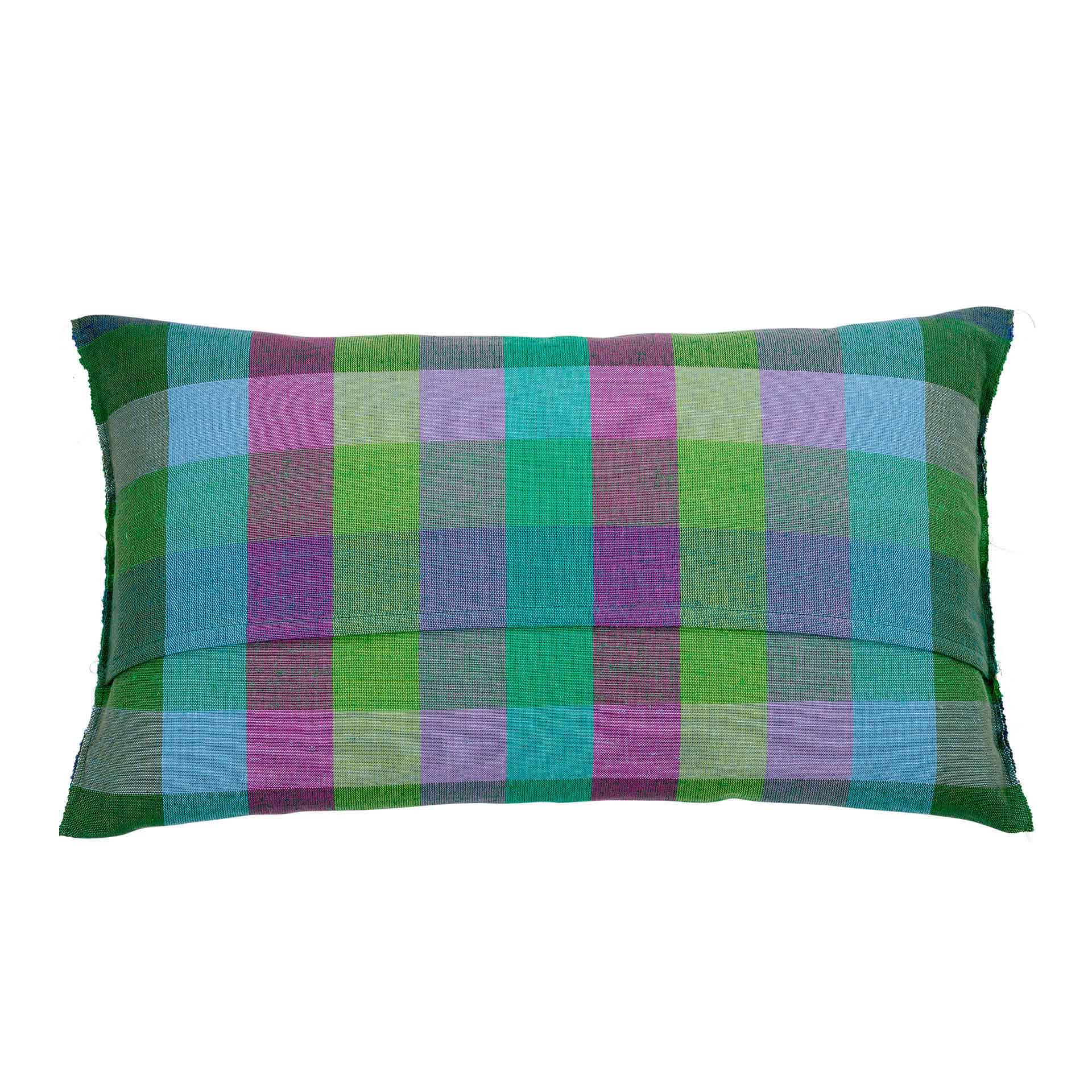 Bringt Farbe in Ihr Zuhause: Das handgewebte Kissen mit Federinlet sorgt für frische Kontraste auf dem Sofa.