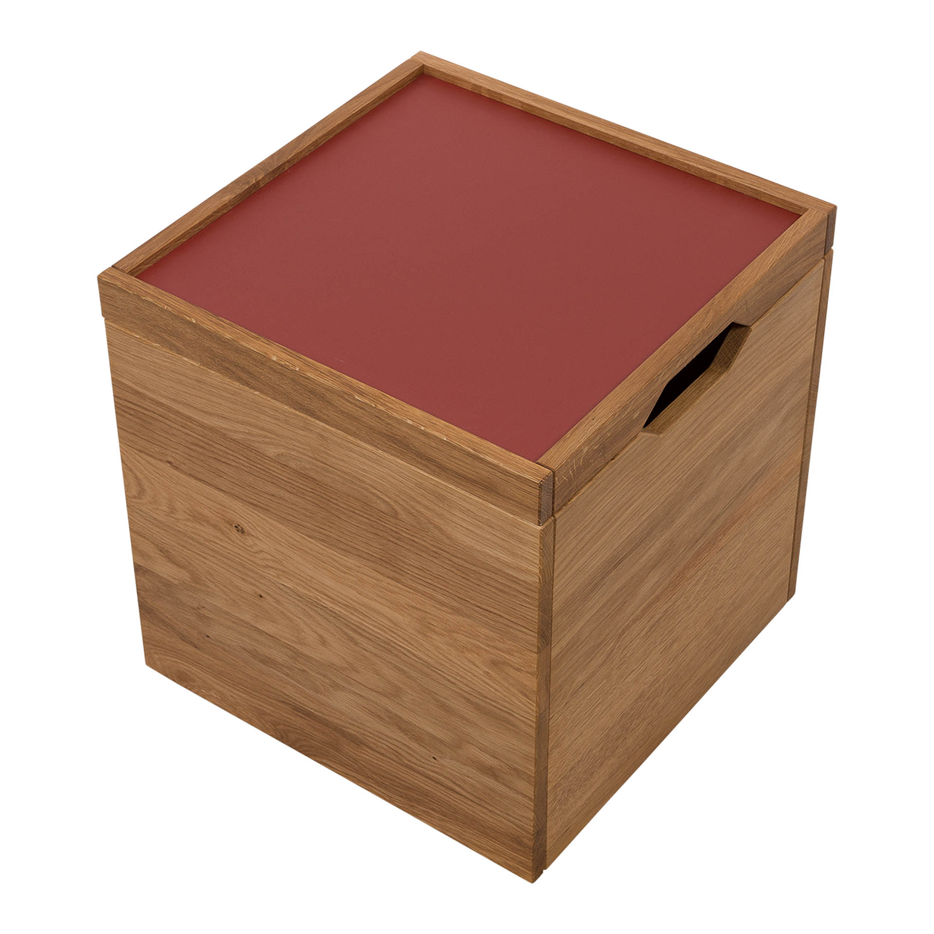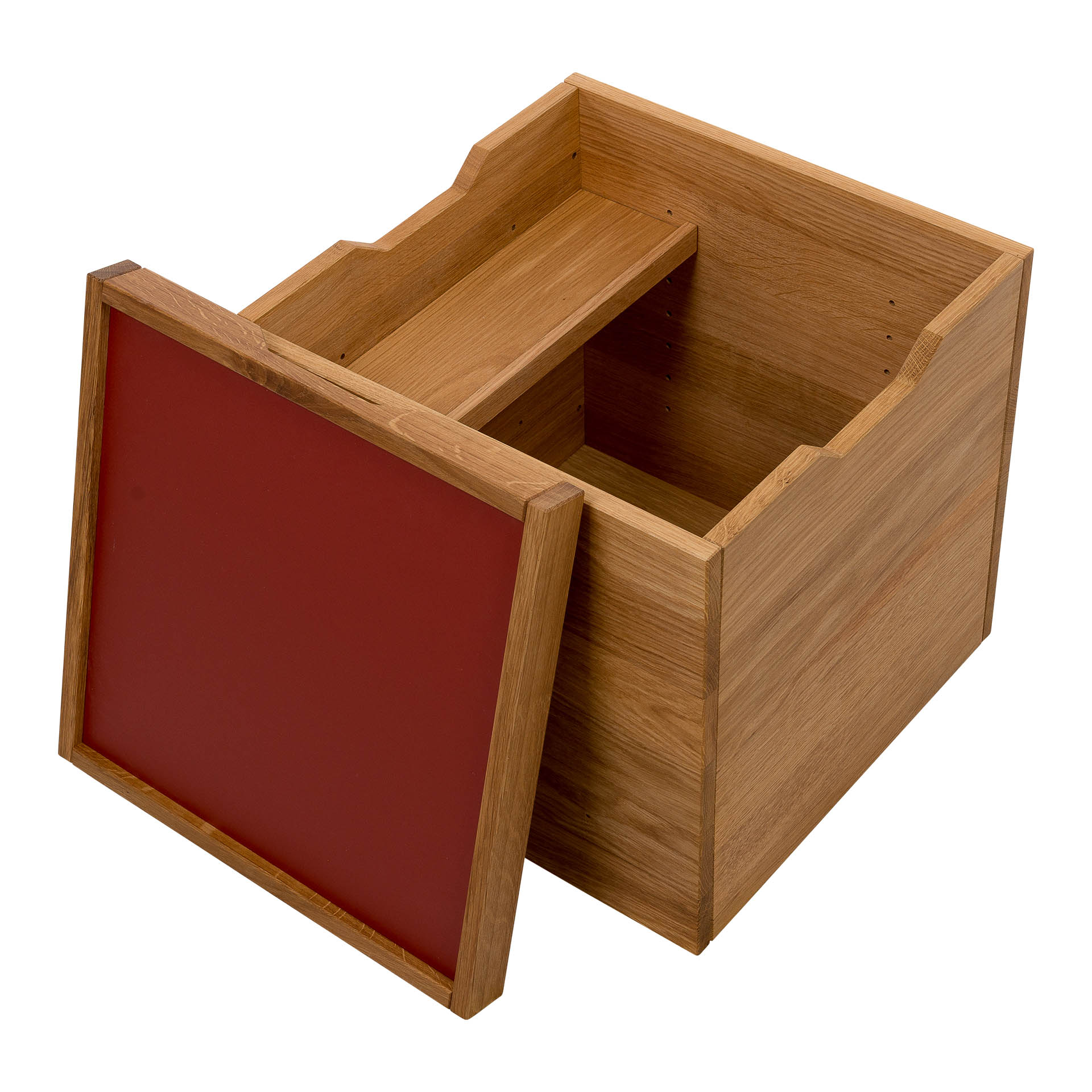 Unser Kube - ein vielseitiges, besonderes Möbelstück. Zuerst fallen die Blicke auf das naturbelassene Linoleum. 98 % natürliche Rohstoffe in modischen Trendfarben schaffen in Kombination mit der massiven Eiche ein besonderes Flair. Die Unempfindlichkeit und leichte Pflege werden Sie begeistern. Öffnen Sie den Deckel und schauen Sie in den geräumigen Innenraum, den Sie mit zwei Einlegeböden individuell einrichten können. Vielleicht bewahren Sie dort Ihre Lieblingszeitschriften oder Ihr Lieblingsgetränk inklusive der Gläser auf? Übrigens: Der Kube lässt sich sehr leicht zusammenbauen und bei Bedarf auch wieder zerlegen.
