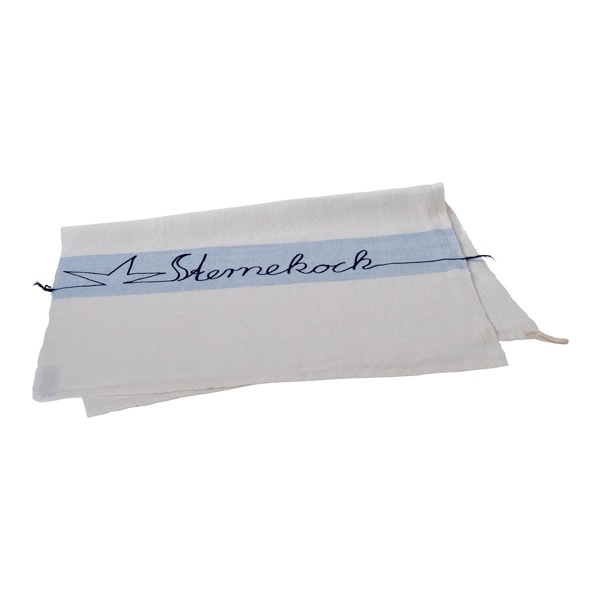 Die Besonderheit: Der gedruckte Schriftzug beginnt und endet mit einem farbig passenden Leinenfaden.