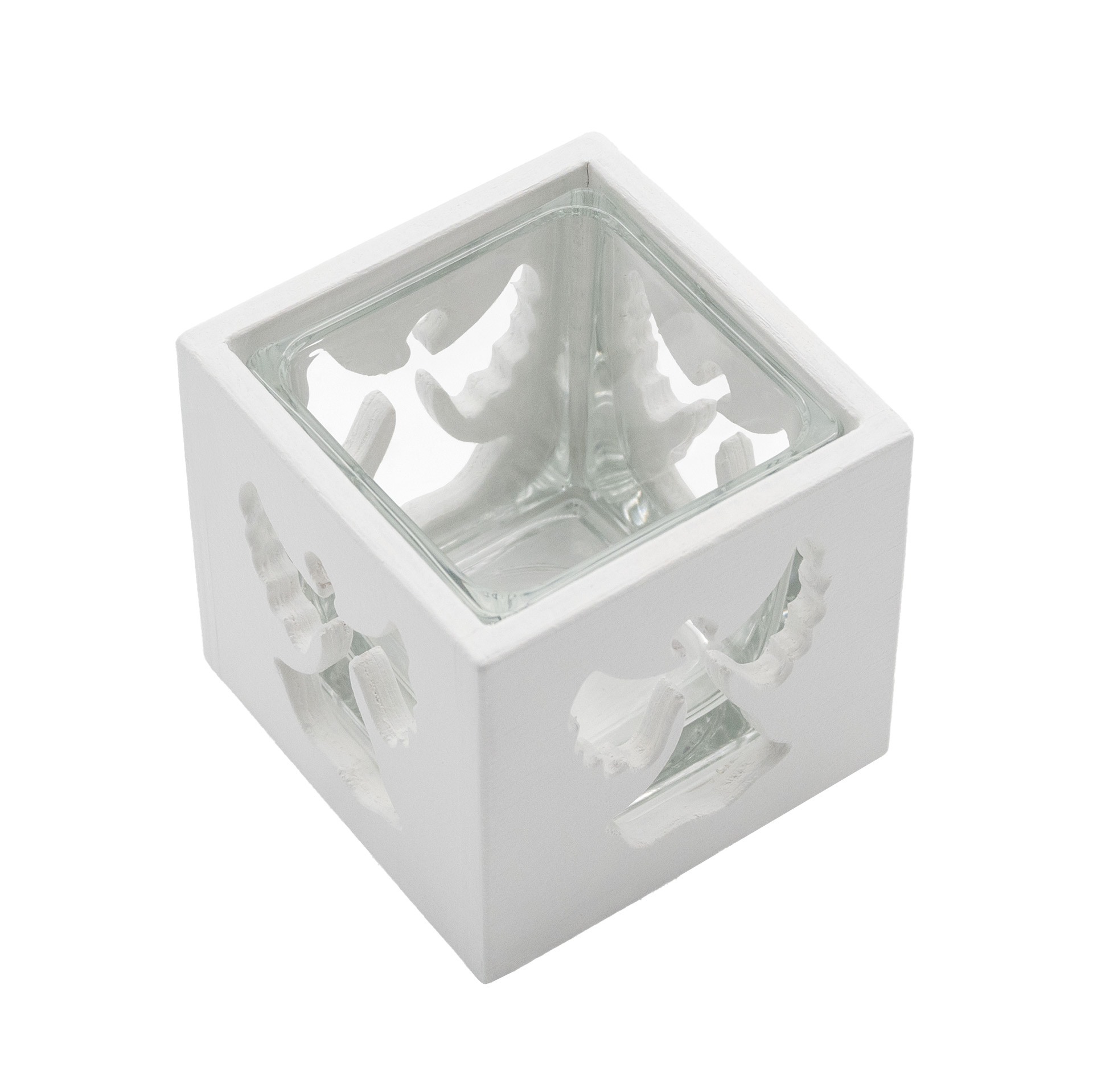 Festliches Stimmungslicht mit Engelmotiv und passendem Teelicht-Einsatz aus Glas.