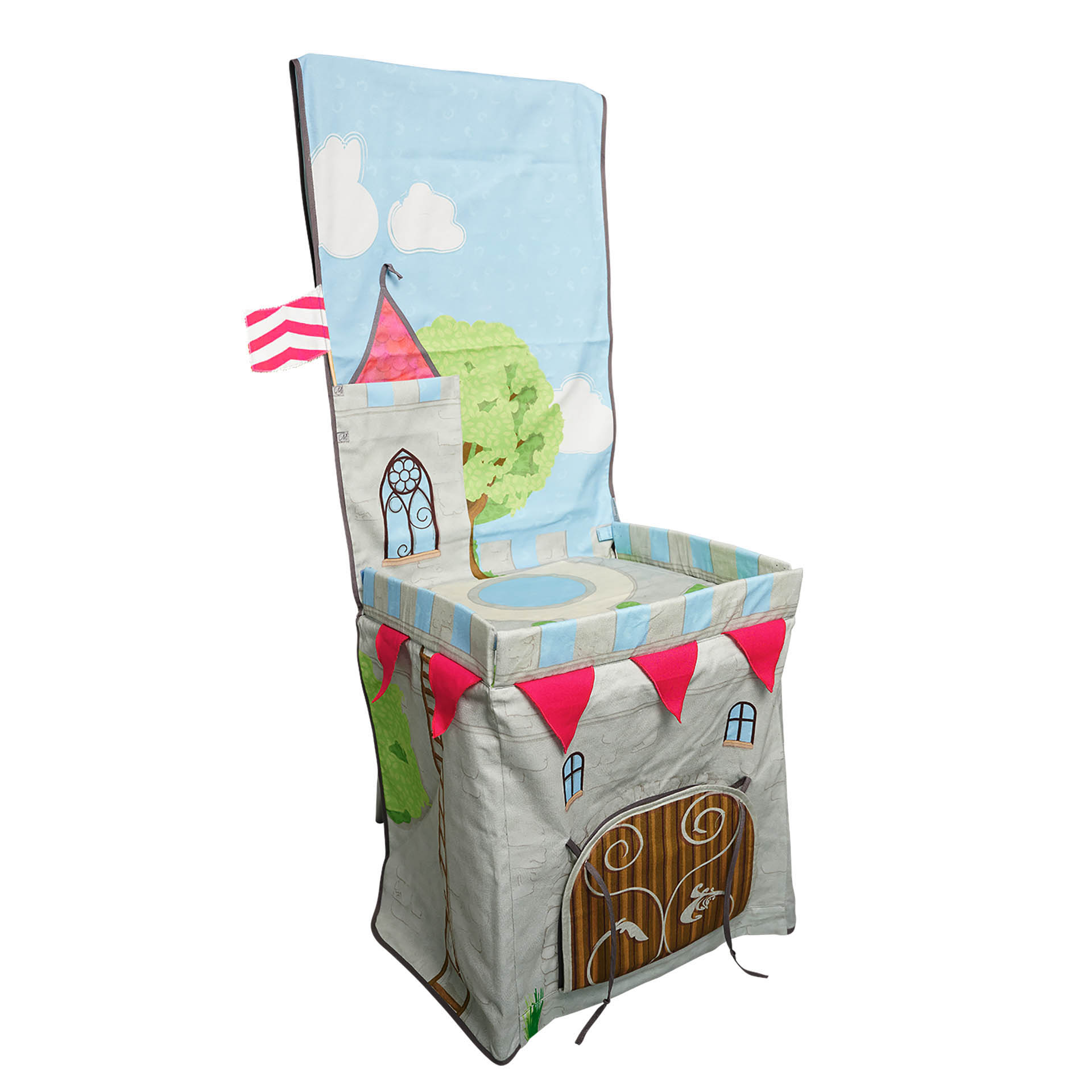 Stuhlhusse im Stil eines Schlosses mit Schlosstor und Turmzinne. Zinnen hochklappbar.